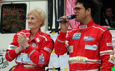 Festspielbühne. Unter dem Beifall des Publikums lud sie die Rallyeteams anschließend zu Bier und