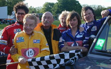 Die Rennleitung (Christoph Schlingensief, Horst Gelonneck, Dietrich Kuhlbrodt, Eva Zander) begrüssen Team Nr. 4 zum »Offenen Training« |