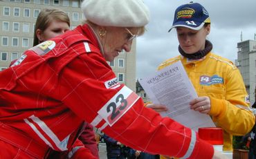 Auch unterwegs konnte gewettet werden: Rennleiterin Eva Zander und Wettbüro-Assistentin Jana nahmen an den Rallye-Stationen zahlreiche Wettscheine entgegen. |